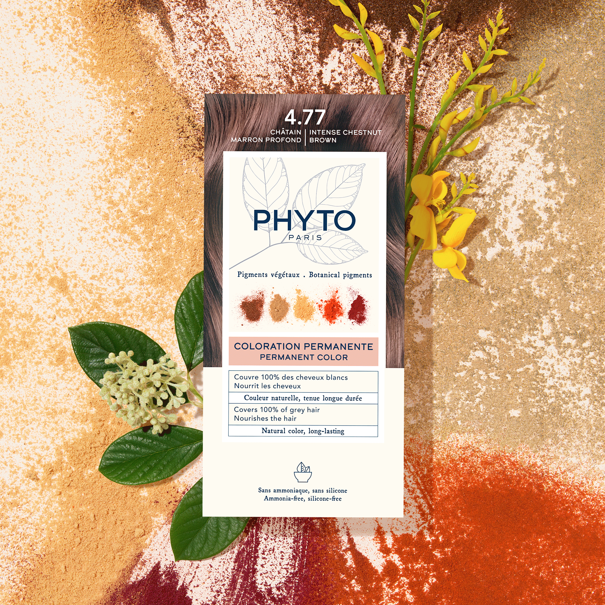 Da mesma forma que as colorações de cabelo convencionais contêm pigmentos químicos, a fórmula PHYTO Hair Color é enriquecida com uma mistura única de pigmentos vegetais de cinco plantas tinturiais, para uma cor intensa e reflexos infinitamente naturais. .