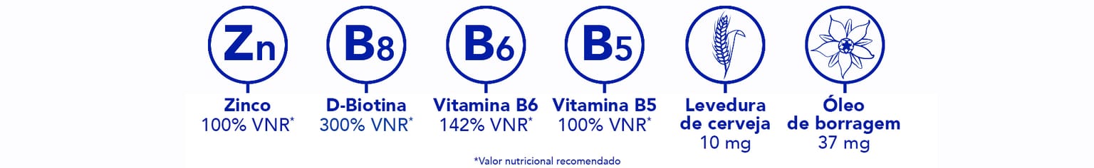 *Da Phyto Paris. (1)O zinco contribui para a manutenção de cabelos e unhas normais. A vitamina B6 contribui para a síntese normal da cisteína. (2)O zinco contribui também para uma síntese proteica normal