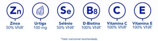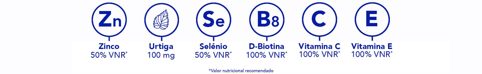 *N.º 1 em vendas no mercado de produtos capilares em França, valor de sell-out no ano de 2024 – GERS (1)O zinco contribui para a manutenção de cabelos e unhas normais. A vitamina B6 contribui para a síntese normal da cisteína. (2)O zinco contribui também para uma síntese proteica normal. (3)Estudo clínico, 104 voluntários, 3 meses, 2 cápsulas por dia, % de satisfação