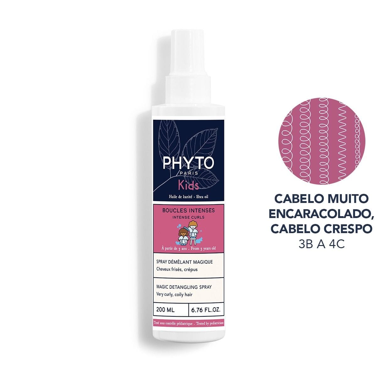 O spray mágico que penteia e desembaraça os cabelos muito encaracolados e crespos das crianças a partir dos 3 anos.