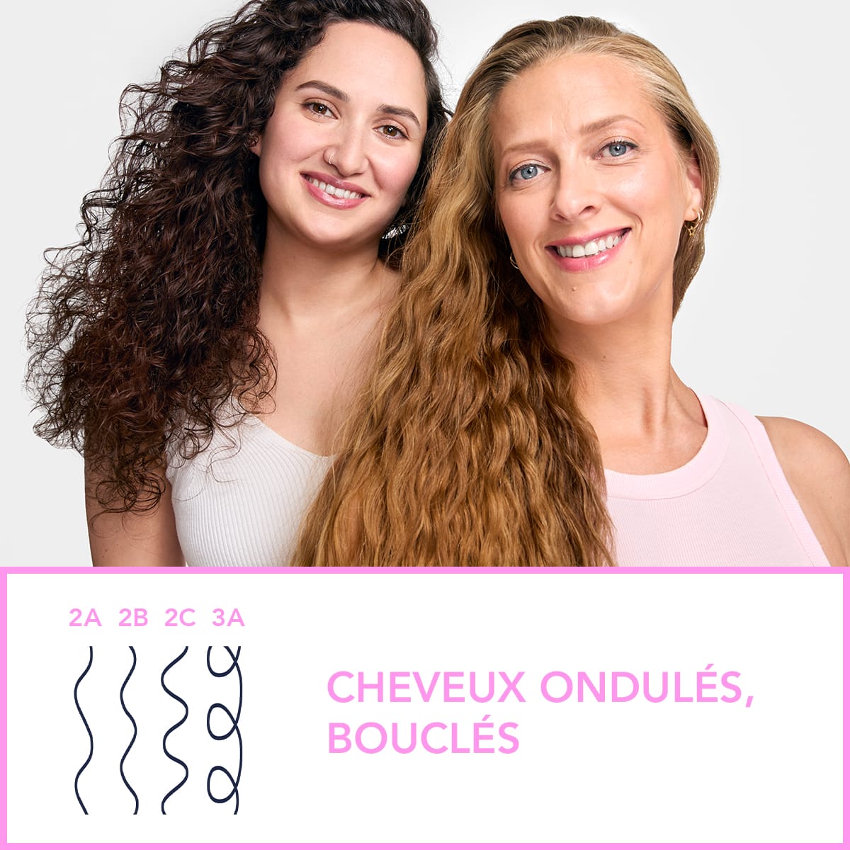 Spray Réveil Boucles Jour 2 : Vaporiser sur cheveux secs. Scruncher délicatement les boucles des pointes vers les racines. Laisser sécher à l’air libre.